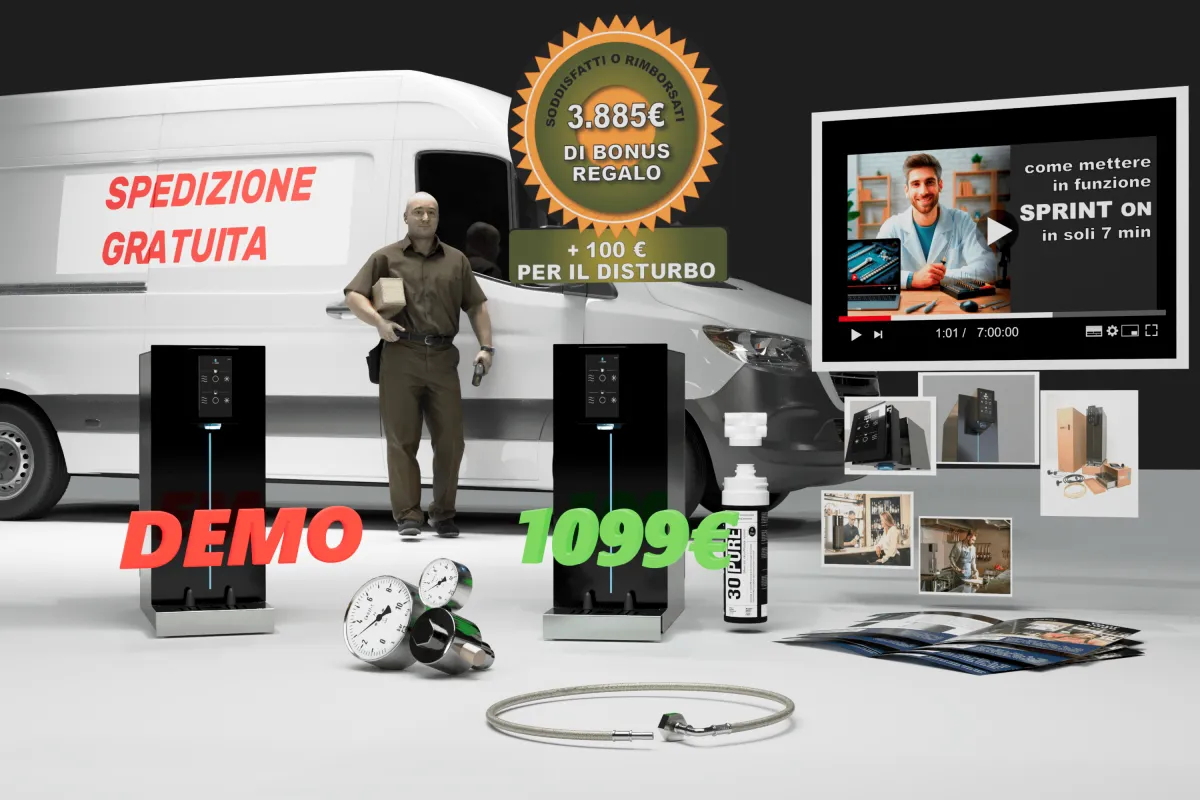 RICEVI GRATIS anche il RIDUTTORE DI PRESSIONE Per La Bombola Di Co2”, così potrai sperimentare all'istante, con i tuoi occhi e il tuo palato, l'esclusiva acqua frizzante di Sprint-On (di solito venduto a 30€)